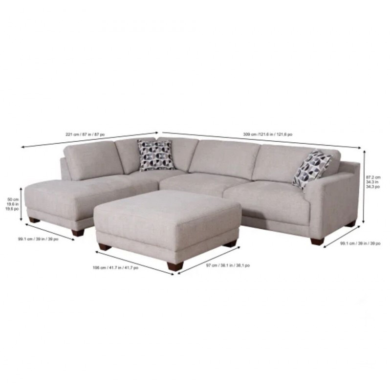 Ottoman: 38.1” L × 41.7” W × 19.8” H; Weight: 44 lbs.